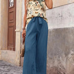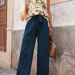 This breezy two-piece set combines effortless style with all-day comfort. The soft, breathable fabric and relaxed fit create a flattering silhouette, while the sleeveless top and flowy trousers offer versatile, polished wear. Perfect for casual outings, beach days, or any warm-weather occasion when you want to feel confident and stylish.