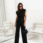 This sophisticated two-piece set combines modern refinement with effortless comfort. The softly draped top and wide-leg trousers create a flattering silhouette that moves beautifully with you. Perfect for brunches, evening dinners, or any occasion when you want to feel elegant and confident.